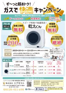 大好評につき延長決定!乾太くん月々200円の「ガスで快適キャンペーン」12月25日まで!