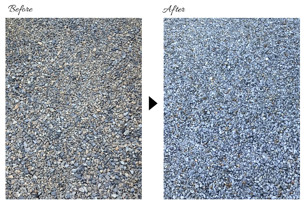 既に敷いていらっしゃった砂利の色が茶色く変色してきて見栄えが悪いとのことで、新しい砂利を敷き直す工事をいたしました。