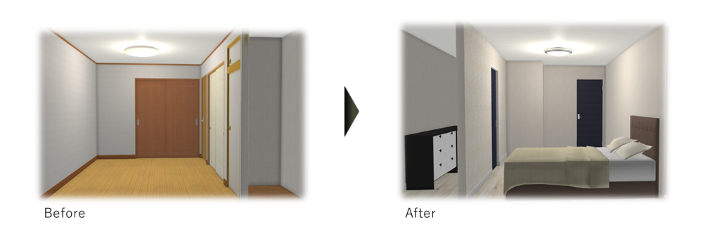 ご夫婦の寝室は押し入れを解体し、内装も変え、反対側にクローゼットを作りました。