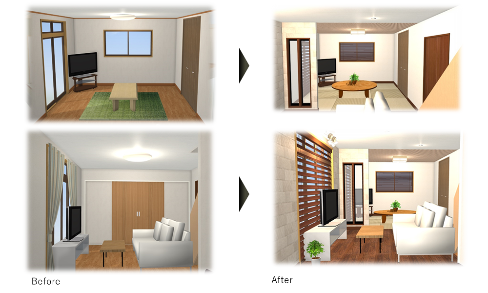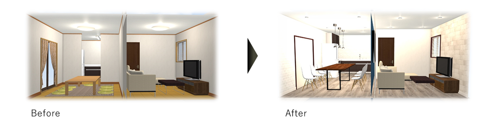 ・自由にデザイン出来、まったく新しい価値をもった住宅へと生まれ変わらせることができます。