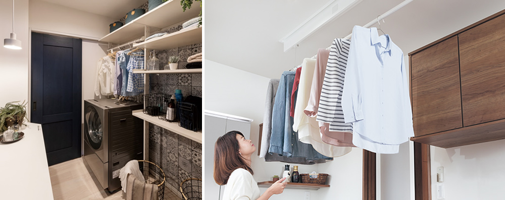 洗濯物を洗う、干す、たたむ・アイロンをかける、洗濯物を仕舞う。この全てが1箇所で出来ると家事がとても