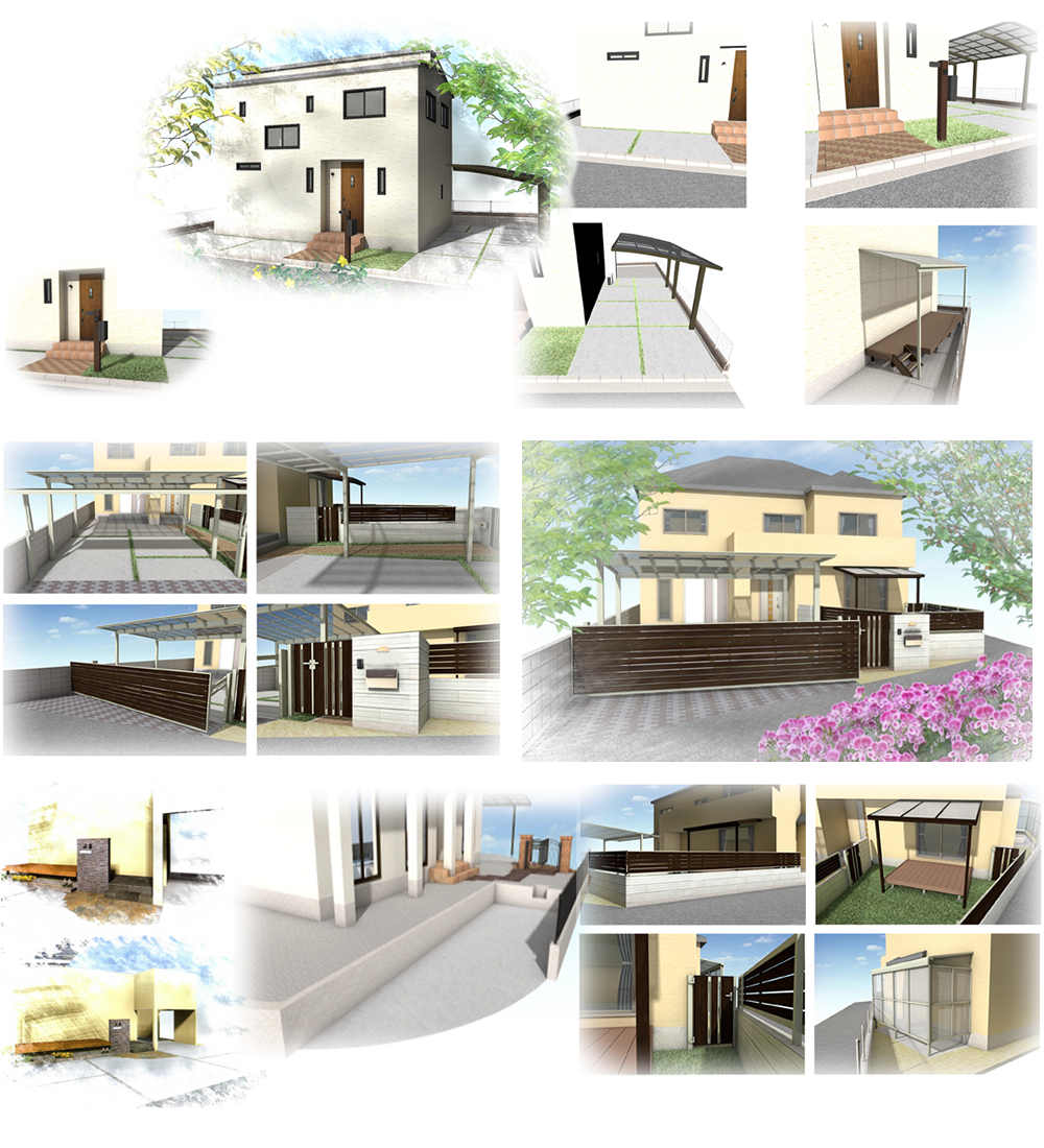お客様のライフスタイルや趣味に合わせた外構・エクステリアのプラン、パース作成いたします。