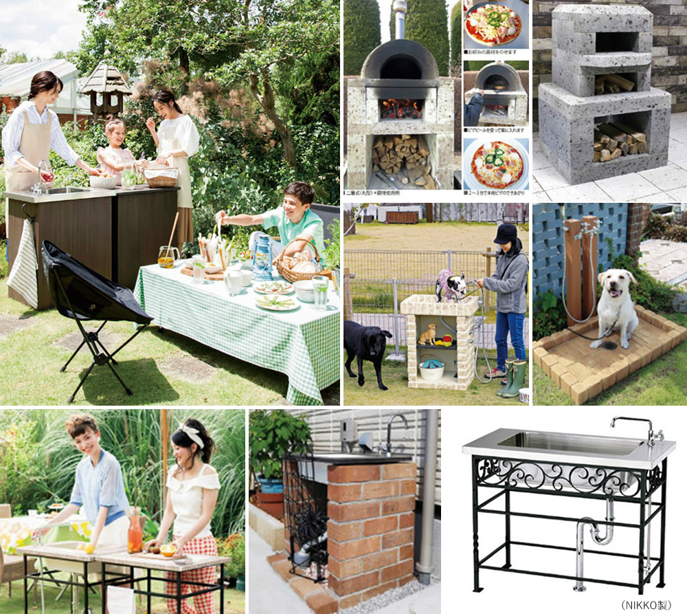 ガーデングリルテーブルやピザ窯、ペットシャワー、などお庭でアウトドアガーデンスタイルのご提案いたします。