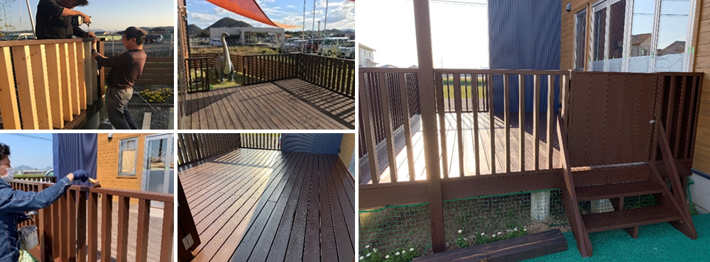 ウッドデッキフェンスも横格子から縦格子に造作し、色褪せていたので全体を塗装しました。