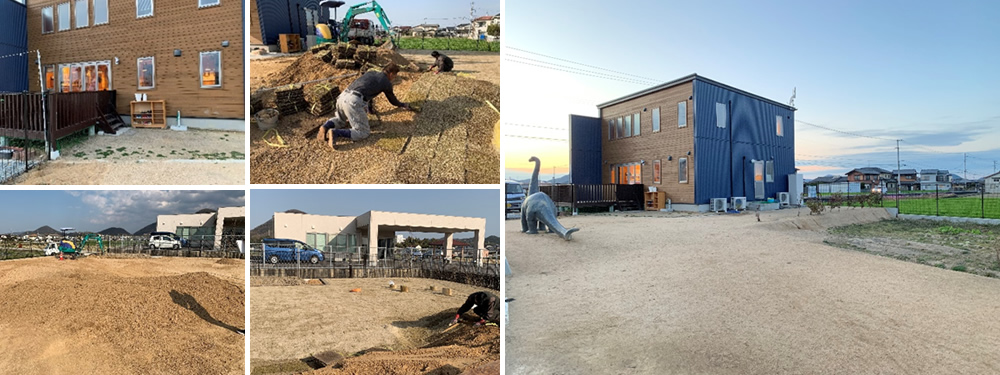 高松市の「保育の家 みいろ」様(0~2歳児保育園)の雑種地を造成後、園庭(外構)を造る工事、