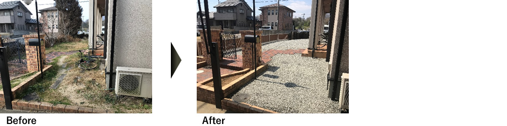 味気ないといった印象も、現在は様々な種類や形、大きさの砂利が出来ており、ちょっとした工夫でおしゃれなエクステリアにすることが出来ます。防草シートを砂利の下に敷いておくこと面倒な雑草手入れも省くことが出来、より一層の雑草対策にもなります。