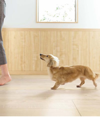 滑りやすいフローリングは足腰に負担がかかってしまい関節疾患の原因となります。足腰の負担に配慮し、ペット対応の床材が開発されました。