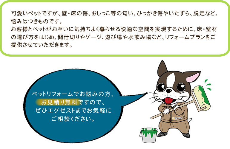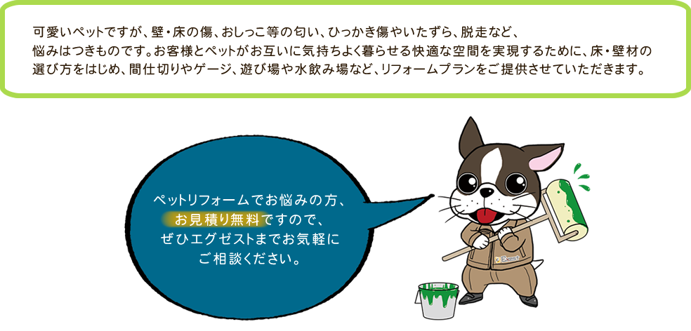 ペットリフォームでお悩みの方はエグゼストまでご相談ください。