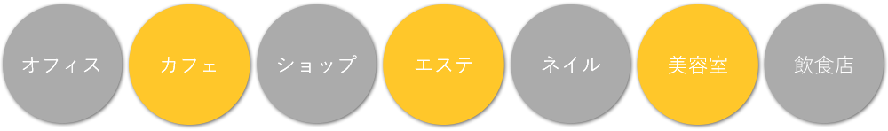 オフィス・カフェ・飲食店・ショップ・美容室・エステ・ネイル・サロンなど
